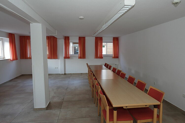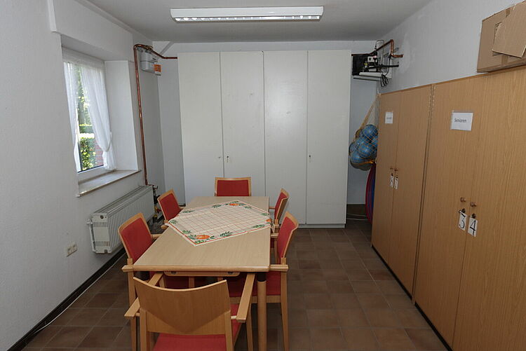 Der große Gruppenraum hat eine Grundfläche von ca. 45m² und Sitzplätze für 20 Personen.